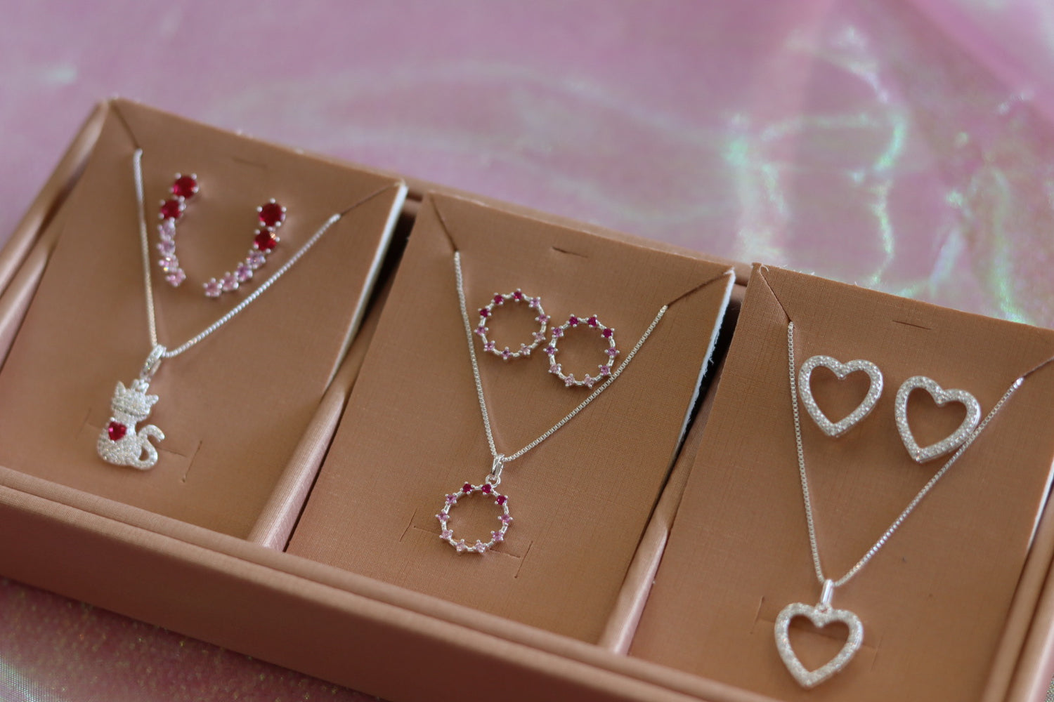 Conjunto círculo zircônias rosa